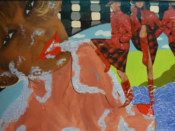 Deux ( détail ) parmi les 7 ou 8 tableaux jamais exposés jusqu'ici et prêtés par le fils d'Evelyne Axell - collage et acrylique - :